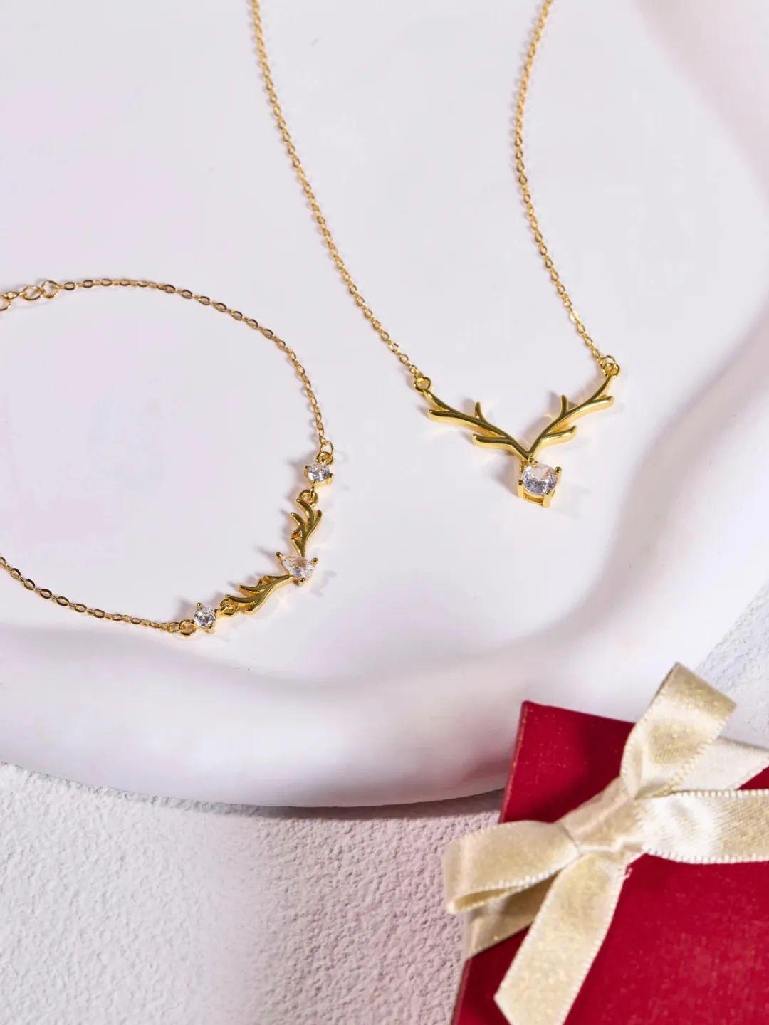 鹿角点缀的氧化锆光泽感非常好,点缀在金色之间,摇光芒曳,拥有迷人的光感。