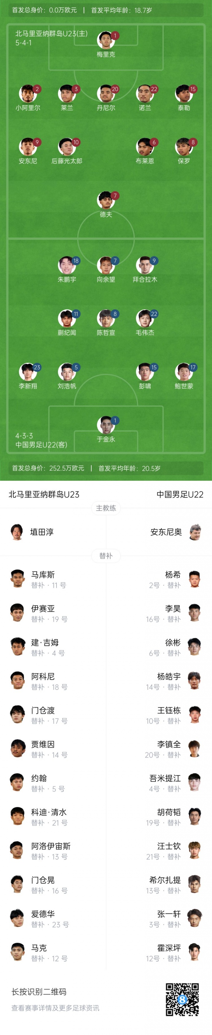 乐鱼官方网站-U23亚预赛-中国vs北马里亚纳:向余望、于金永先发,王钰栋替补